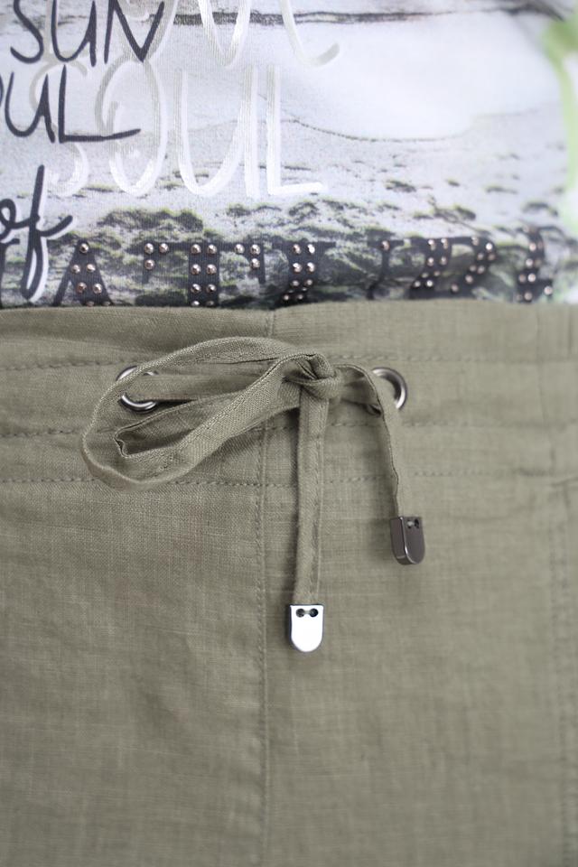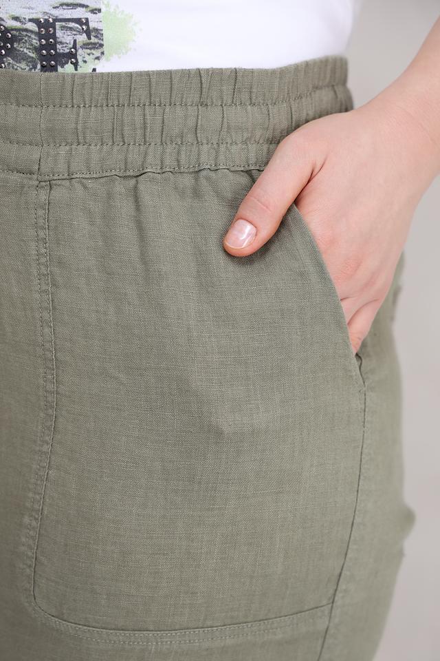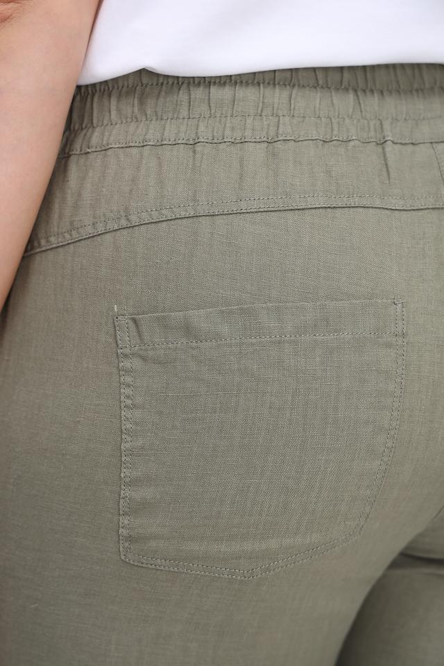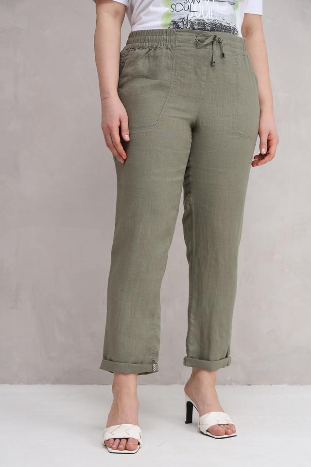 Льняные брюки Olsen цвета хаки — это удобная и стильная модель с эластичным поясом и завязками. Брюки прямого кроя, с карманами, идеально подойдут для создания повседневных образов. Состав: лен 100%