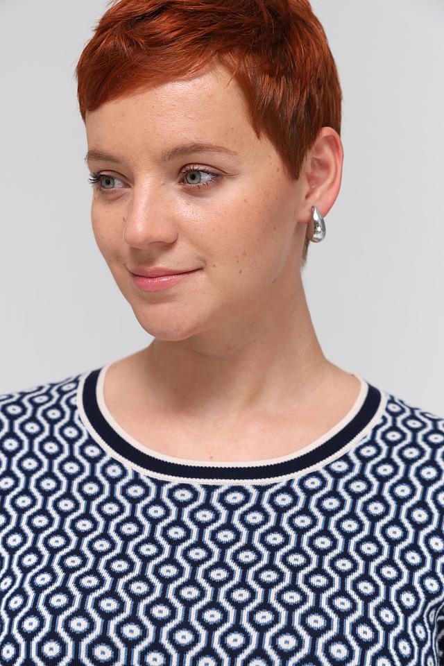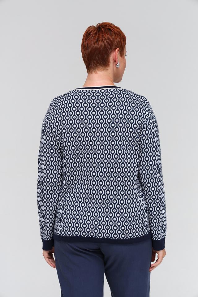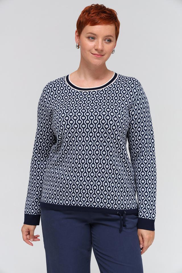 Этот пуловер от Olsen станет отличным дополнением к вашему образу. Он выполнен в синем цвете с оригинальным геометрическим узором, который придает ему особый шарм.