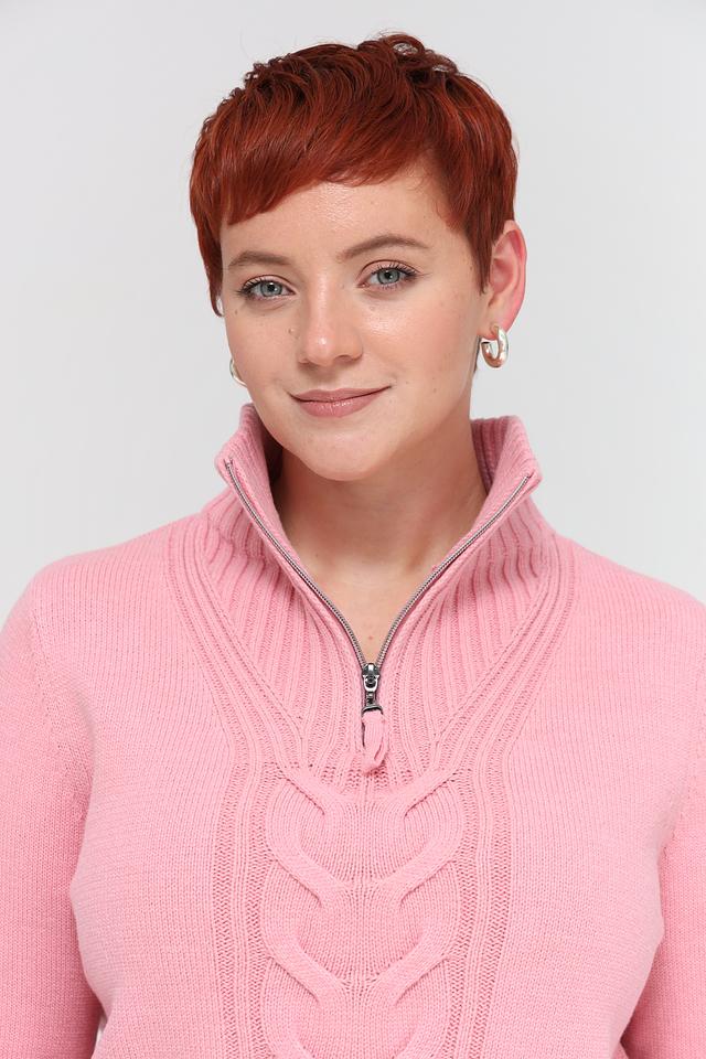 Розовый пуловер Olsen с косами и застёжкой на молнии станет отличным дополнением к вашему гардеробу. Изготовлен из мягкого и приятного к телу сочетания хлопка и акрила, обеспечивая комфорт в носке. Состав: хлопок 60%, акрил 40%