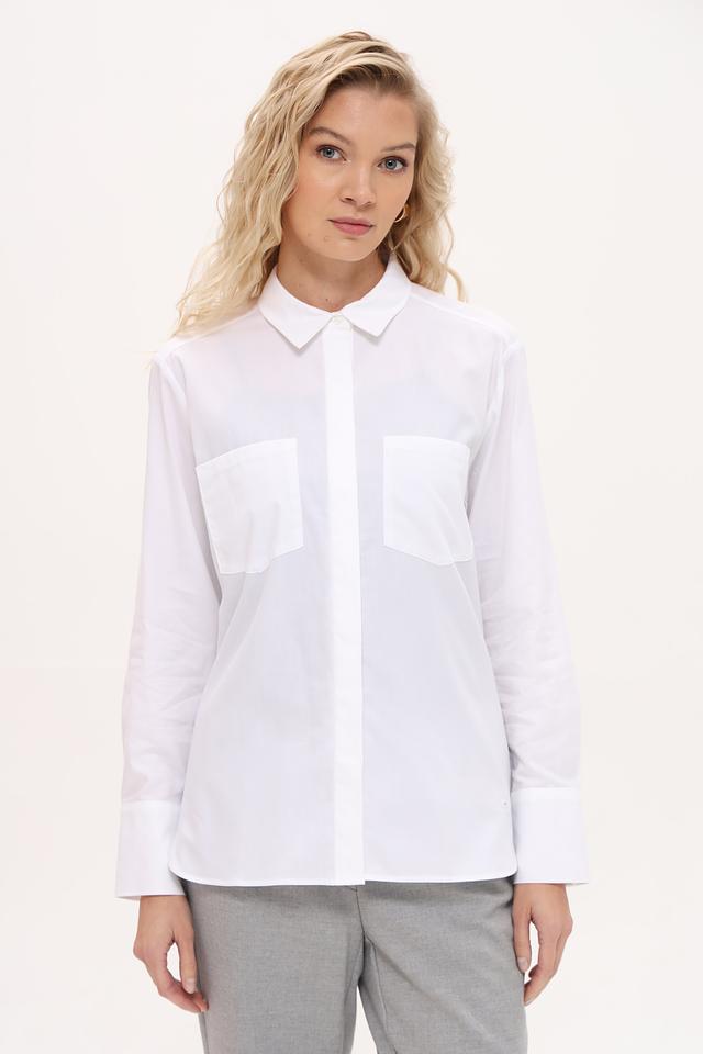 Белая рубашка Olsen классического кроя выполнена из 100% хлопка. Модель имеет длинный рукав, приталенный силуэт и нагрудные карманы, что придает ей особый стиль и универсальность. Состав: хлопок 100%