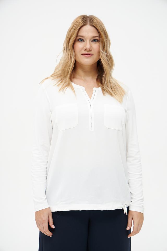 Белая блуза от Olsen с длинными рукавами и накладными карманами. Изготовлена из мягкой и приятной к телу ткани, обеспечивающей комфорт в носке. Отличный выбор для создания повседневных образов. Состав: вискоза 63%, полиэстер 33%, эластан 4%