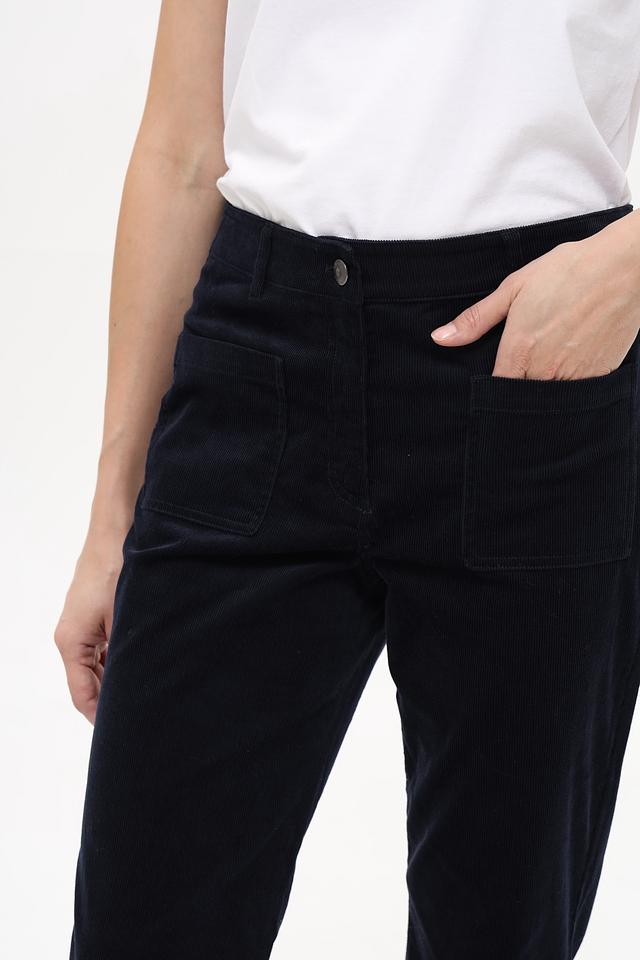 Тёмно-синий цвет делает эти брюки универсальным элементом гардероба, который легко сочетается с различными верхами и обувью. Вельветовая текстура придает им особый шарм и изысканность. Эти брюки станут отличным выбором для создания как повседневных, так и более формальных образов.