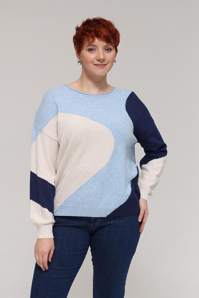Женский пуловер Olsen голубого цвета с оригинальным геометрическим рисунком станет стильным дополнением к вашему гардеробу. Модель выполнена из мягкого трикотажа, обеспечивающего комфорт в носке. Состав: вискоза 52%, полиэстер 28%, полиамид 20%