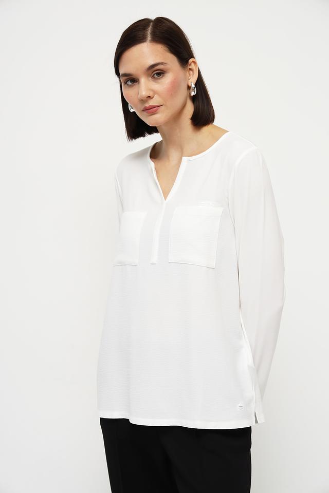 Белая блузка Olsen из вискозы с длинными рукавами и накладными карманами. Изделие выполнено из мягкой и приятной к телу ткани, в составе которой вискоза, полиэстер и эластан. Состав: вискоза 63%, полиэстер 33%, эластан 4%