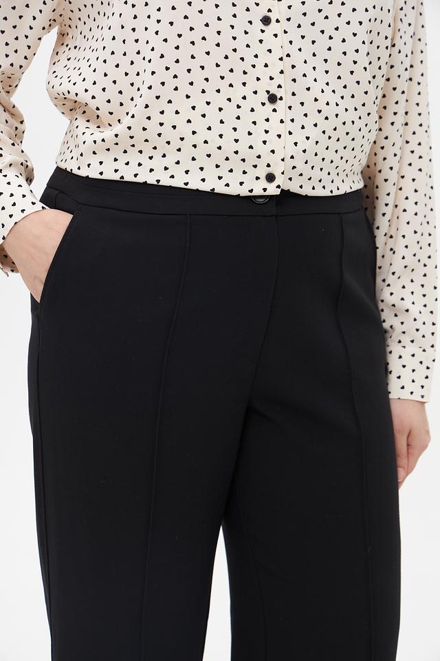 Состав ткани: 62% полиэстер, 32% вискоза, 6% эластан. Эта комбинация материалов обеспечивает приятные тактильные ощущения, хорошую посадку и лёгкость в уходе. Брюки идеально подойдут для создания как повседневных, так и более формальных образов.