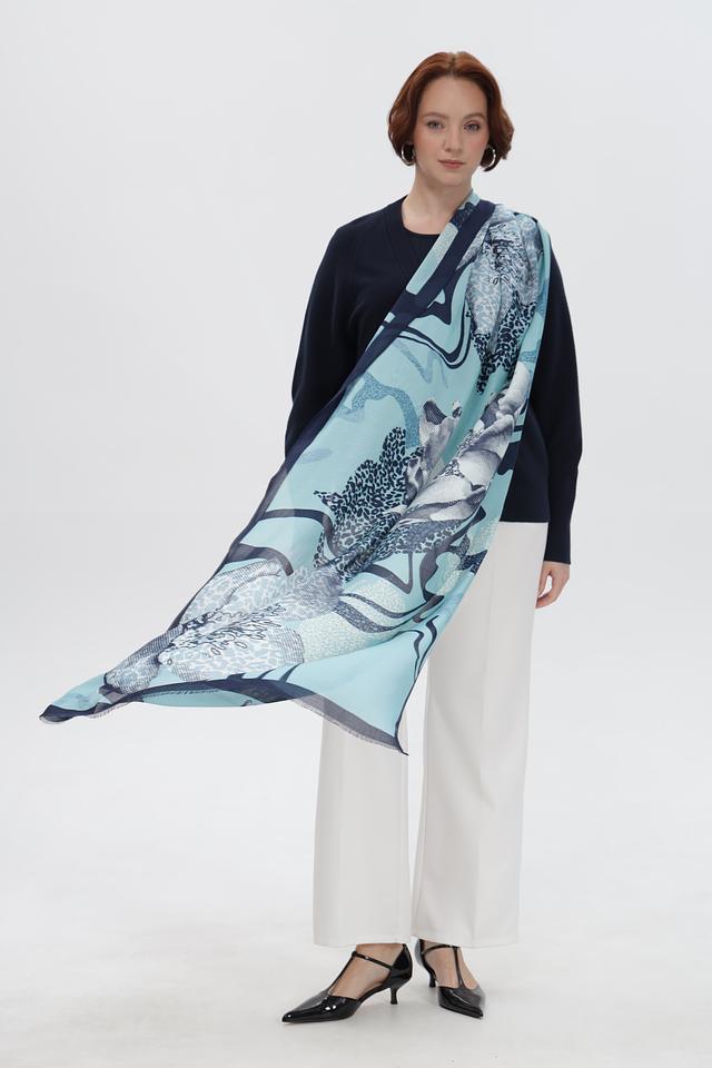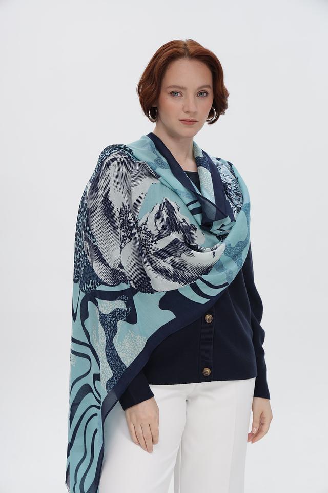 Голубой шарф Olsen с оригинальным принтом станет ярким акцентом вашего образа. Изготовлен из 100% вискозы, приятен на ощупь и хорошо драпируется. Идеально подходит для создания стильных и модных образов. Состав: вискоза 100%