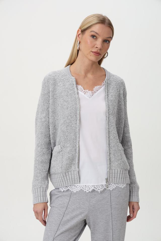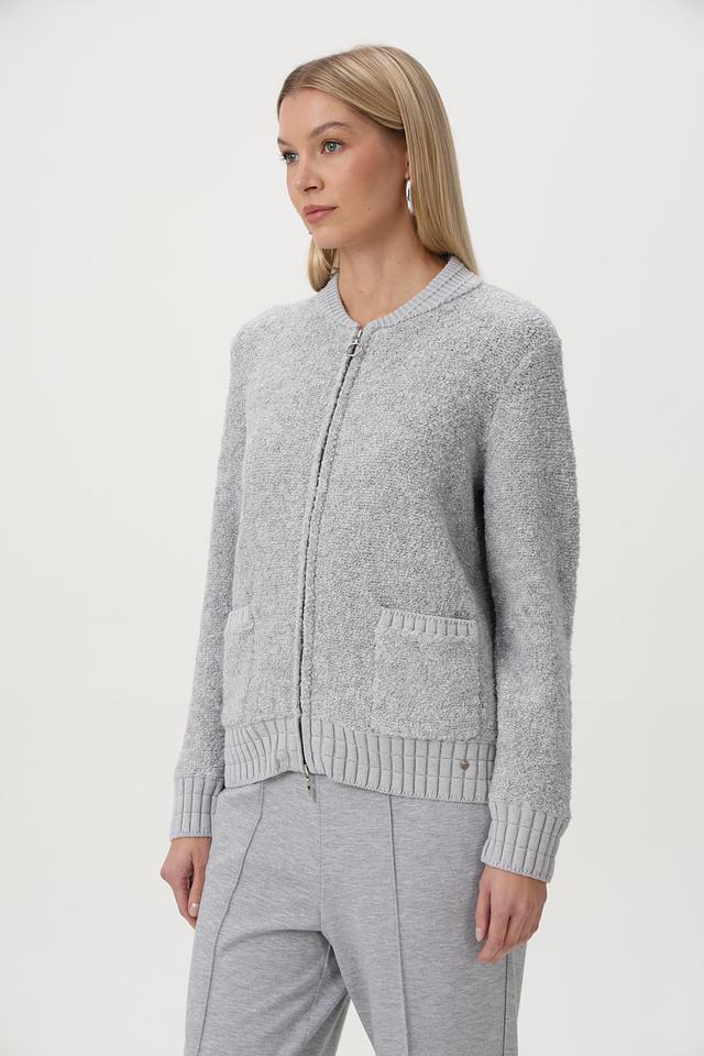 Серый жакет Olsen с застежкой-молнией — стильное и комфортное решение для прохладной погоды. Изготовлен из смесового состава с добавлением шерсти, что обеспечивает тепло и мягкость. Удобный крой и практичные карманы. Состав: полиэстер 54%, шерсть 18%, хлопок 14%, акрил 14%