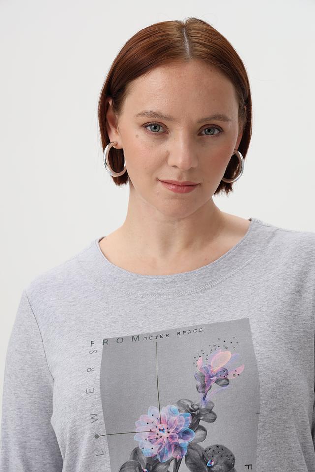 Женский лонгслив Olsen серого цвета с оригинальным цветочным принтом станет отличным дополнением к вашему образу. Изготовлен из мягкого хлопка с добавлением эластана для комфорта и удобства. Состав: хлопок 95%, эластан 5%