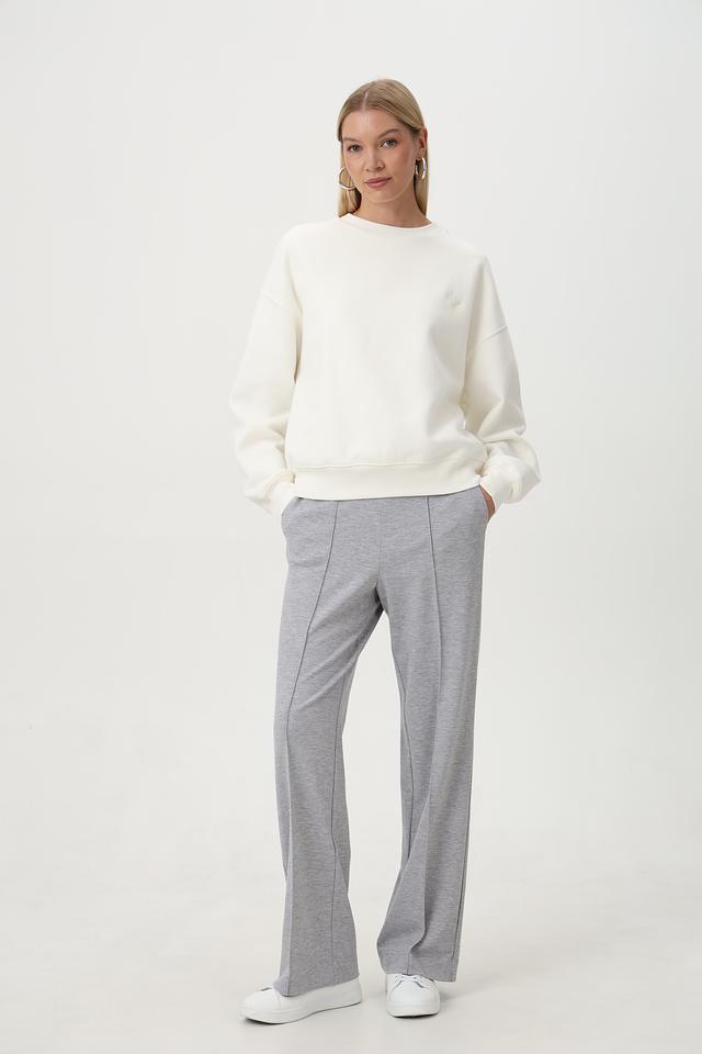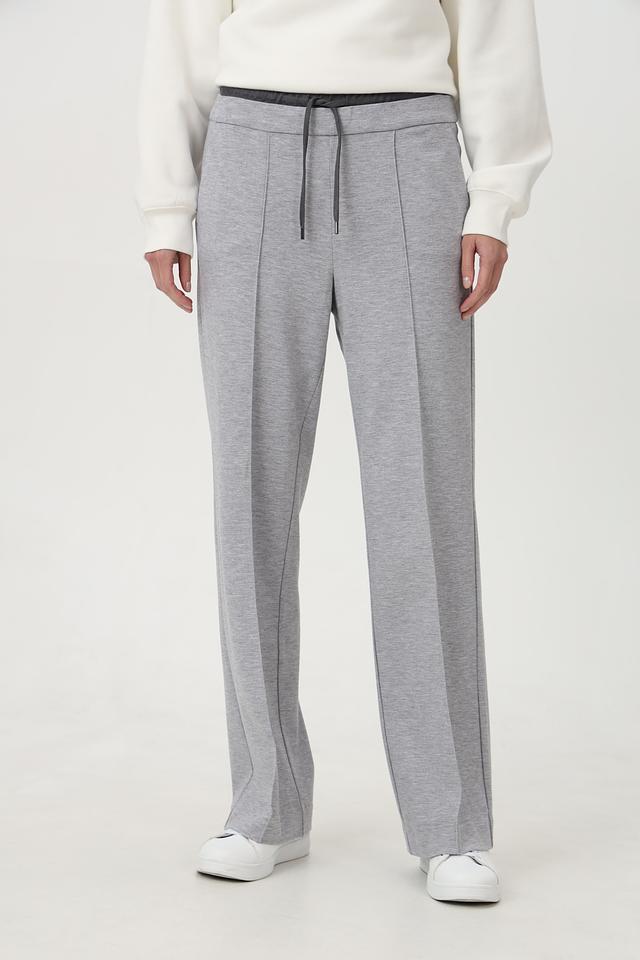 Брюки выполнены из мягкого трикотажа, который обеспечивает приятные ощущения при носке. Прямой крой визуально вытягивает силуэт, а пояс на кулиске позволяет регулировать посадку по фигуре. Боковые карманы добавляют функциональности.