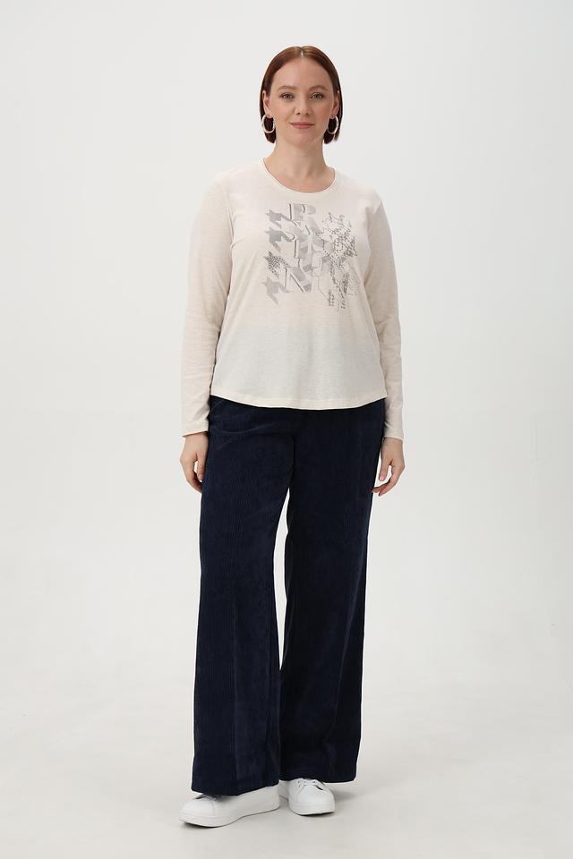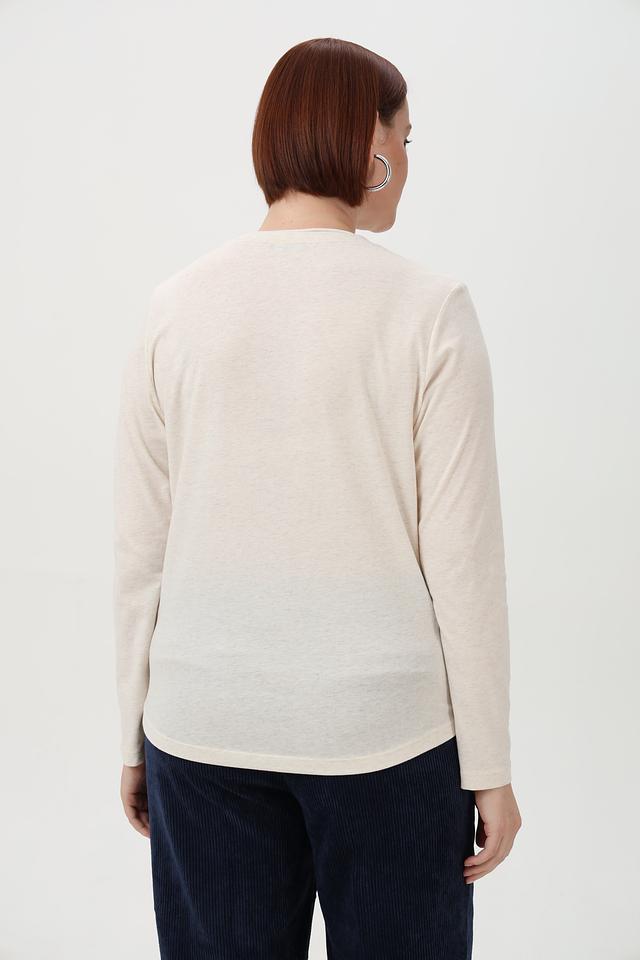 Лонгслив имеет свободный крой, который обеспечивает комфортную посадку по фигуре, а длинные рукава делают его идеальным выбором для прохладной погоды. Круглый вырез горловины добавляет классический штрих.