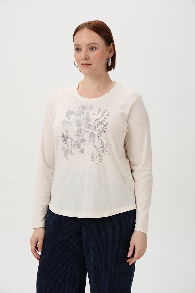 Представляем вам стильный и комфортный лонгслив от бренда Olsen. Эта модель выполнена в приятном бежевом цвете и украшена эффектным цветочным принтом, который придаёт ей изысканность.