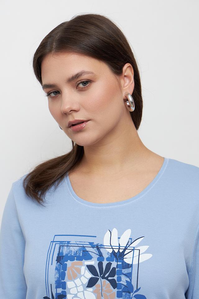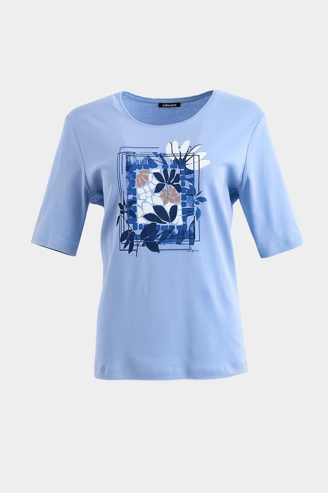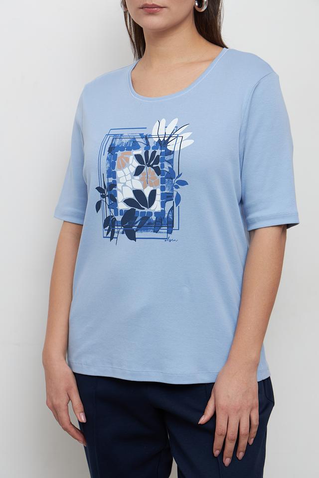 Голубая футболка от Olsen с оригинальным цветочным принтом станет отличным дополнением к вашему гардеробу. Изготовлена из 100% хлопка, обеспечивая комфорт и удобство в носке. Стильный крой и яркий дизайн. Состав: хлопок 100%