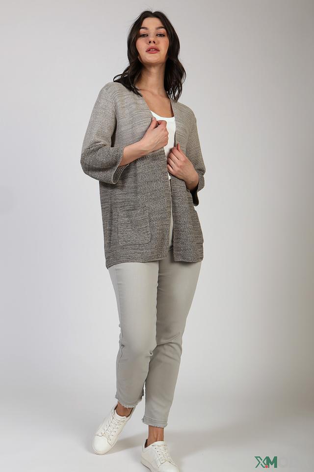 Серый вязаный жакет Olsen – это стильное и комфортное решение для создания уютного образа. Модель имеет свободный крой, 3/4 рукава и карманы. Жакет выполнен из мягкого хлопка с добавлением полиэстера. Состав: хлопок 96%, полиэстер 4%