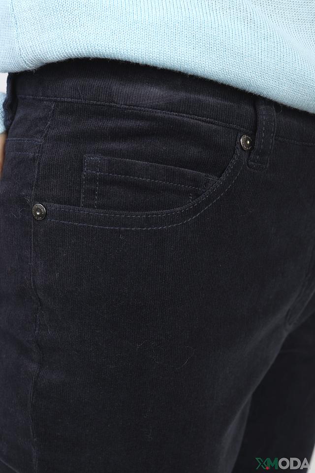 Состав ткани: 98% хлопок, 2% эластан. Эластан обеспечивает комфортную посадку по фигуре и позволяет брюкам сохранять форму в течение дня. Брюки оснащены стандартным набором карманов — боковыми и задними. Застежка — молния и пуговица.