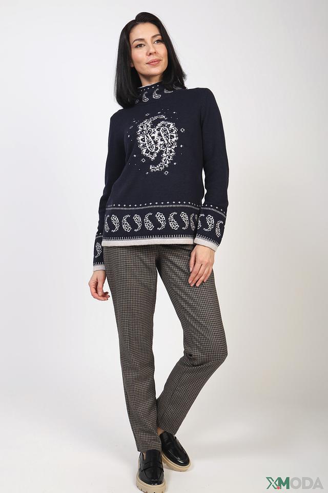 Тёмно-синий пуловер от Olsen с оригинальным жаккардовым узором. Модель выполнена из мягкого трикотажа с добавлением шерсти и альпаки для комфорта и тепла. Идеальный выбор для создания уютных образов. Состав: вискоза 38%, полиамид 35%, шерсть 22%, альпака 5%
