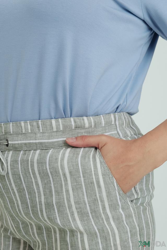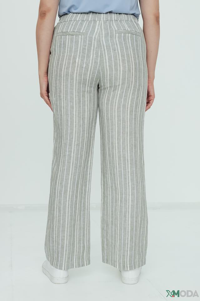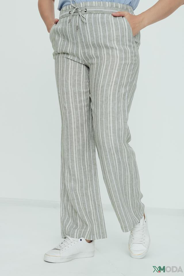 Женские брюки Olsen серого цвета с вертикальной полоской выполнены из 100% льна. Модель имеет завышенную талию и удобный пояс на кулиске, обеспечивающий комфортную посадку. Состав: лен 100%