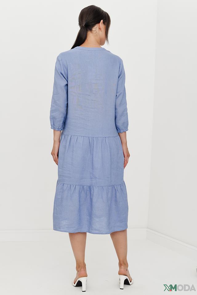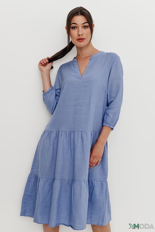 Голубое льняное платье от Olsen – это идеальный выбор для летнего гардероба. Модель свободного кроя с рукавами 3/4 и многослойной юбкой обеспечивает комфорт и лёгкость в жаркую погоду. Состав: лен 100%