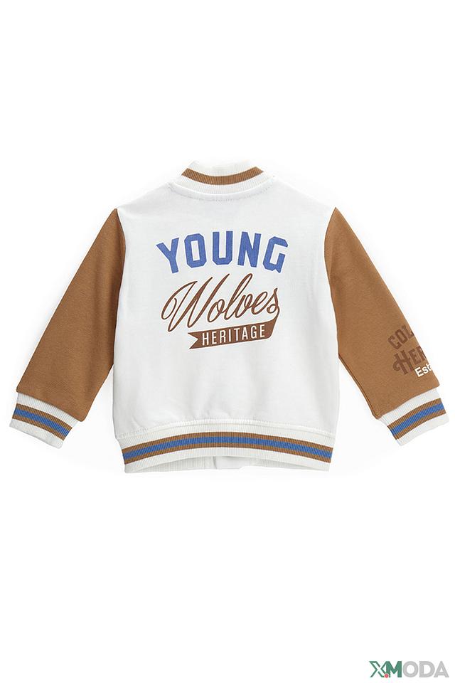 Этот джемпер от Original Marines станет отличным дополнением к гардеробу вашего мальчика. Модель выполнена в коричневом цвете с контрастными рукавами и отделкой. Передняя часть украшена аппликацией в виде буквы "M", а на спине – яркий логотип с надписью "YOUNG Wolves HERITAGE".