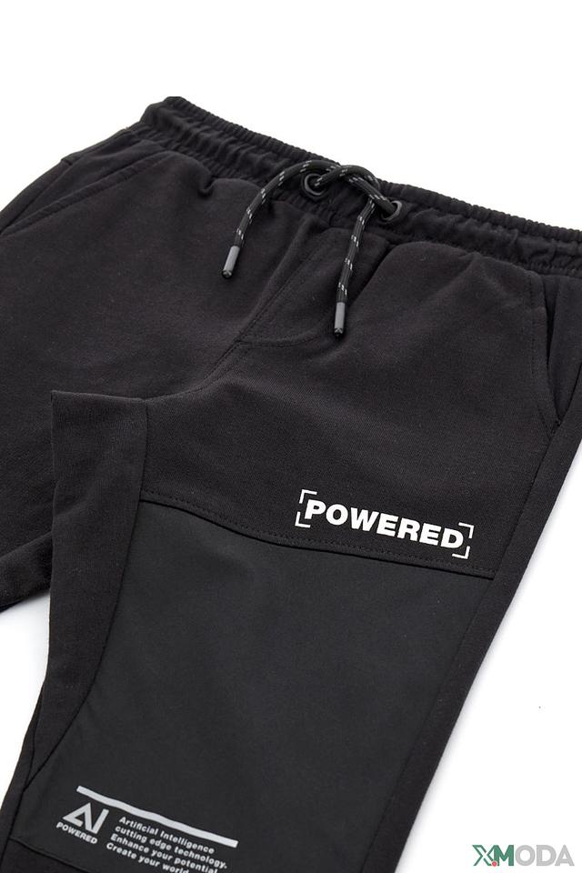 Брюки изготовлены из высококачественного хлопка, что обеспечивает комфорт и свободу движений в течение всего дня. Прямой крой и эластичный пояс с регулирующим шнурком гарантируют идеальную посадку по фигуре. На брюках присутствует яркий принт с надписью "NEW REVOLUTION" вдоль штанины и логотип "POWERED" на бедре, что придаёт им современный и динамичный вид.