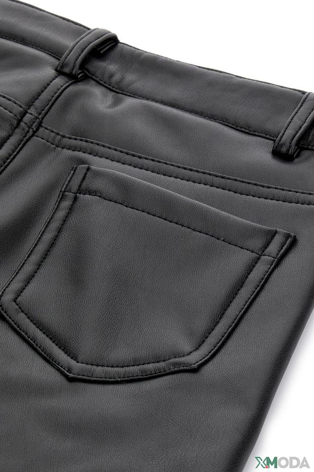 Модель выполнена из высококачественного полиэстера с добавлением эластана, что обеспечивает приятные тактильные ощущения, хорошую посадку и свободу движений. Ткань визуально напоминает кожу, придавая изделию современный и эффектный вид.