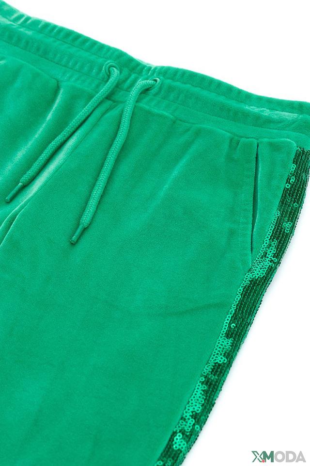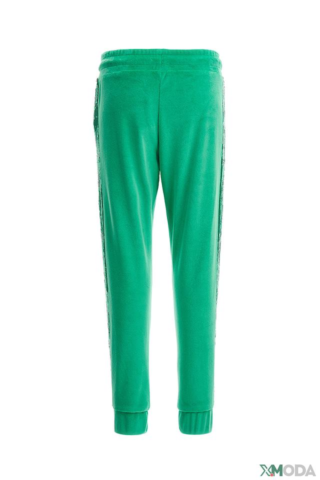 Джинсы изготовлены из высококачественного хлопка с добавлением эластана, что обеспечивает мягкость, комфорт и свободу движений. Удобный эластичный пояс с регулируемым шнурком гарантирует идеальную посадку. По бокам брюк расположены декоративные полосы с пайетками, которые придают образу игривость и блеск.