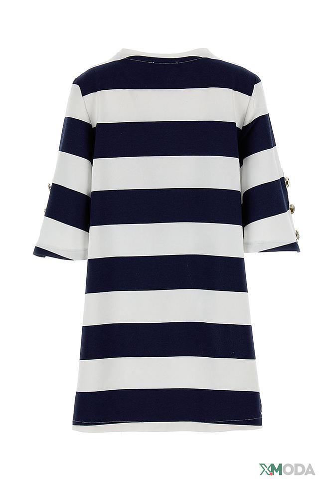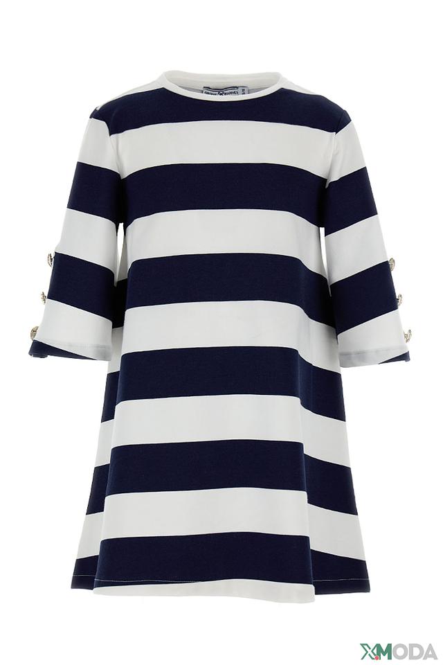 Это очаровательное платье от Original Marines станет отличным выбором для юной модницы. Платье выполнено в классическую сине-белую полоску, что делает его универсальным и легко сочетаемым с другой одеждой.