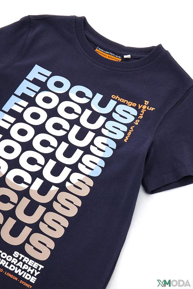Эта стильная футболка от Original Marines станет любимой вещью вашего ребенка. Футболка выполнена в насыщенном синем цвете и украшена крупным, эффектным принтом "FOCUS", выполненным в различных оттенках синего, жёлтого и белого.