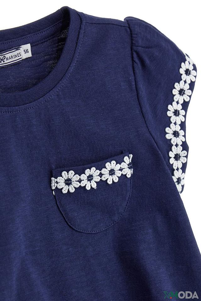 Детская футболка Original Marines синего цвета с цветочным принтом на рукавах и кармане. Изготовлена из 100% хлопка, обеспечивая комфорт и удобство в носке. Состав: хлопок 100%