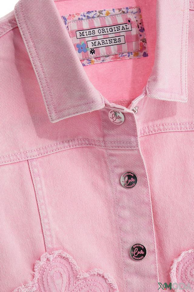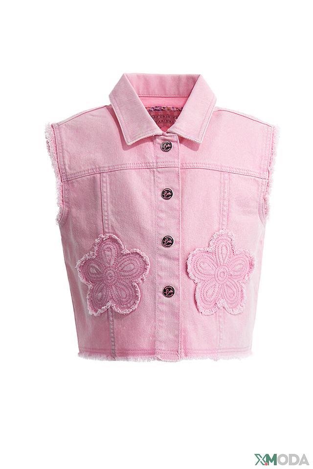 Розовый джинсовый жилет Original Marines для девочки с аппликацией в виде цветов. Модель выполнена из 100% хлопка, обеспечивая комфорт и удобство в носке. Стильный и практичный выбор для создания модных образов. Состав: хлопок 100%