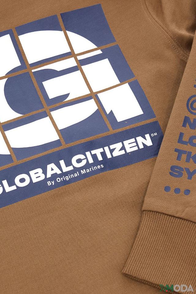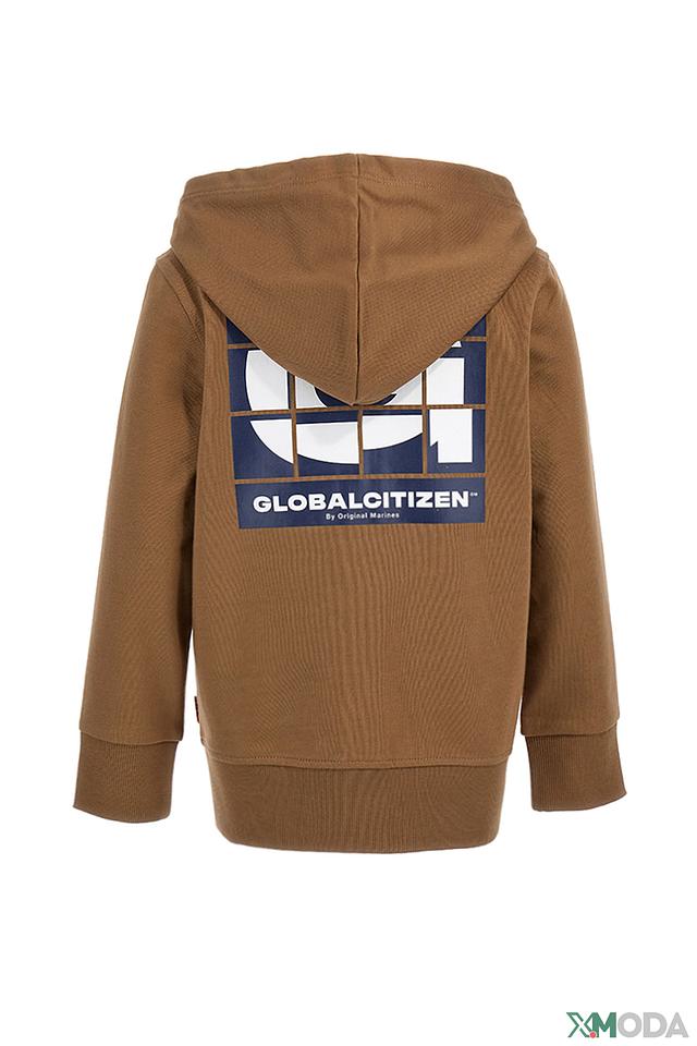 Модель имеет удобный капюшон, застежку-молнию и эластичные манжеты на рукавах и по низу изделия. На передней части толстовки расположен яркий принт с логотипом бренда и надписью. На спине – крупный графический рисунок с названием бренда “GLOBALCITIZEN”.