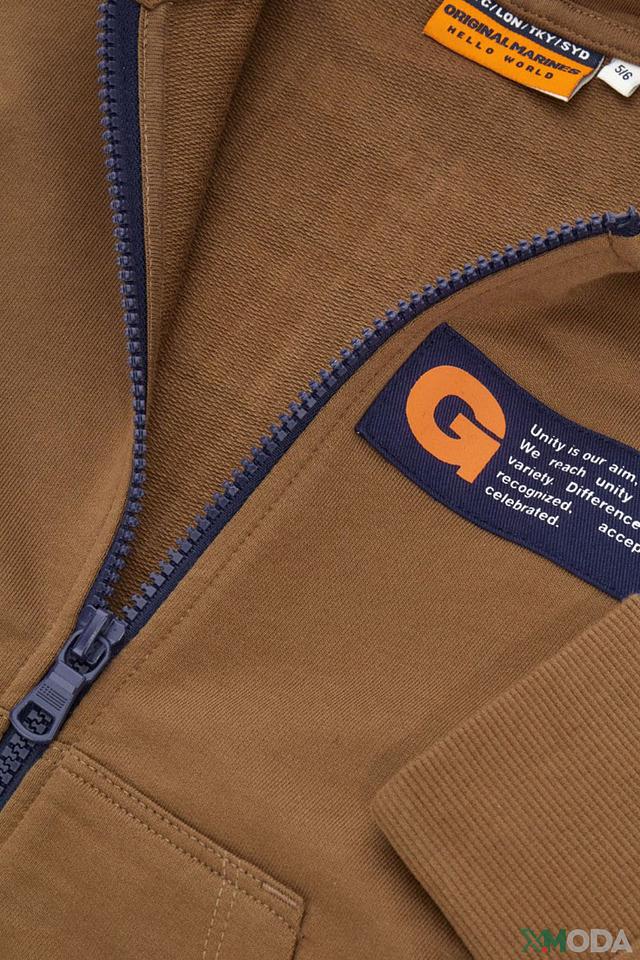 Коричневая толстовка Original Marines с капюшоном и молнией – удобная и стильная одежда для мальчиков. Модель выполнена из мягкого хлопка и украшена ярким принтом с логотипом бренда. Состав: хлопок 100%, Состав_подкладка хлопок 100%