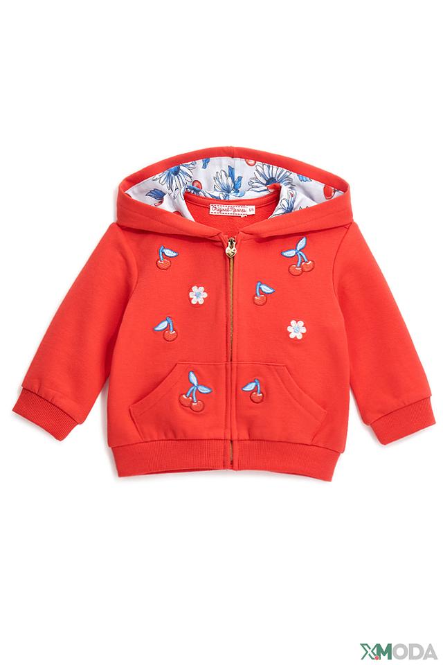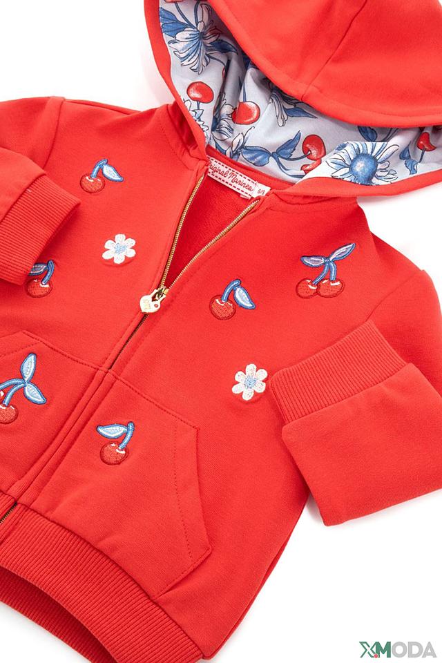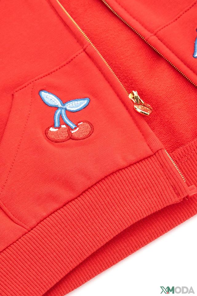 Яркая красная толстовка Original Marines для девочки, украшенная вышивкой в виде вишен и цветов. Модель на молнии с капюшоном, выполнена из мягкого хлопка с добавлением эластана для комфорта. Состав: хлопок 95%, эластан 5%