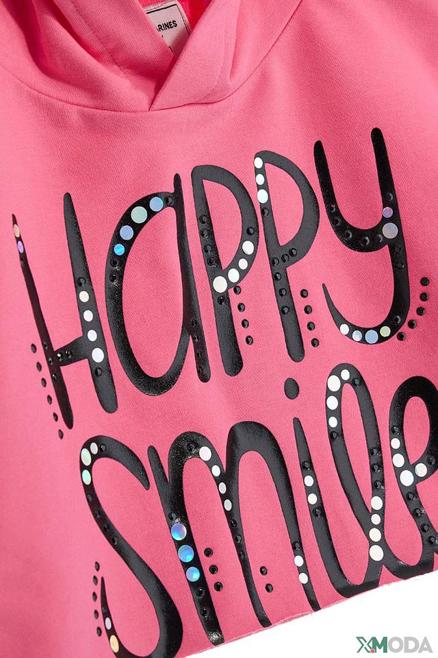 Розовая толстовка Original Marines для девочки с ярким принтом "Happy Smile". Удобная модель из мягкого хлопка с эластаном, идеально подходит для повседневной носки и активных игр. Состав: хлопок 95%, эластан 5%