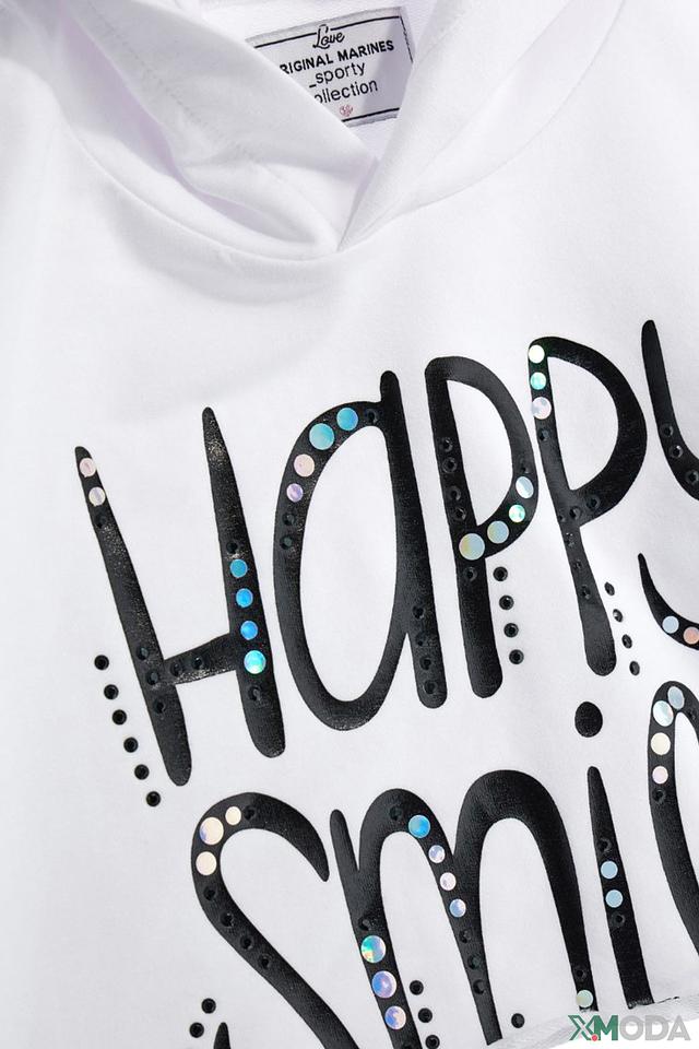 Этот стильный худи от Original Marines станет любимой вещью в гардеробе вашей девочки. Выполненный в белом цвете, он украшен забавным принтом "Happy Smile", который добавит позитива и радости образу.