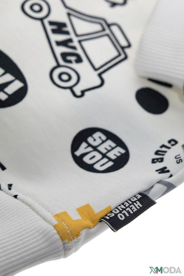 Свитшот имеет круглый вырез горловины, длинные рукава с манжетами и эластичный низ. Манжеты и низ изделия выполнены из рибаны в тон основной ткани. Принт нанесён качественными красками, устойчивыми к стирке.