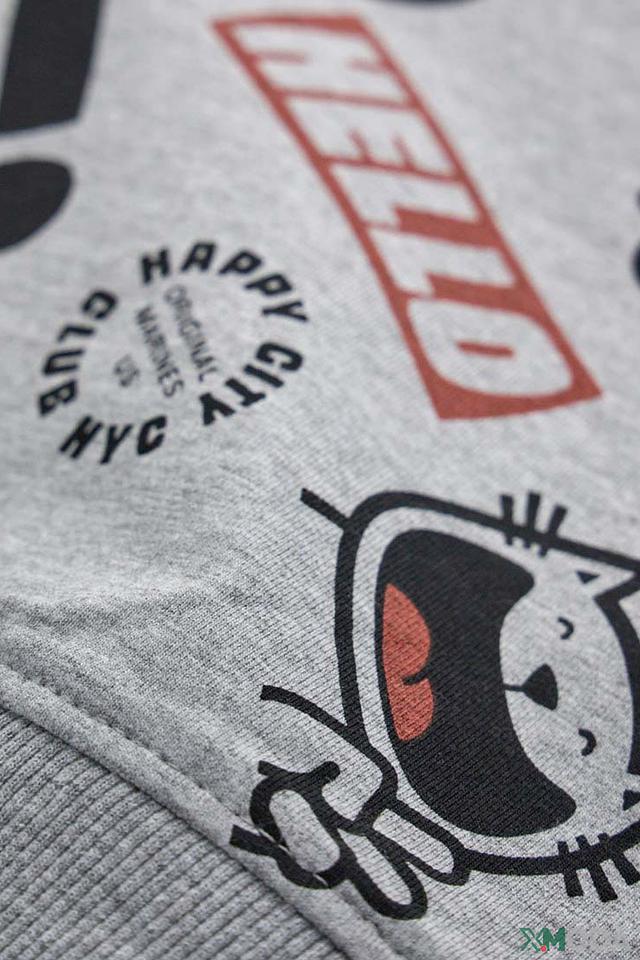 Свитшот от Original Marines – это стильная и практичная одежда для активных мальчиков. Модель выполнена в сером цвете и украшена забавным принтом с изображениями кошек, автомобилей и надписями.