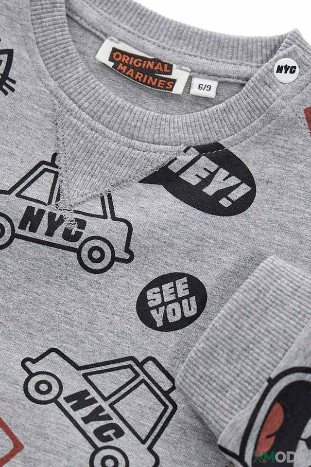 Свитшот от Original Marines – это стильная и практичная одежда для активных мальчиков. Модель выполнена в сером цвете и украшена забавным принтом с изображениями кошек, автомобилей и надписями.