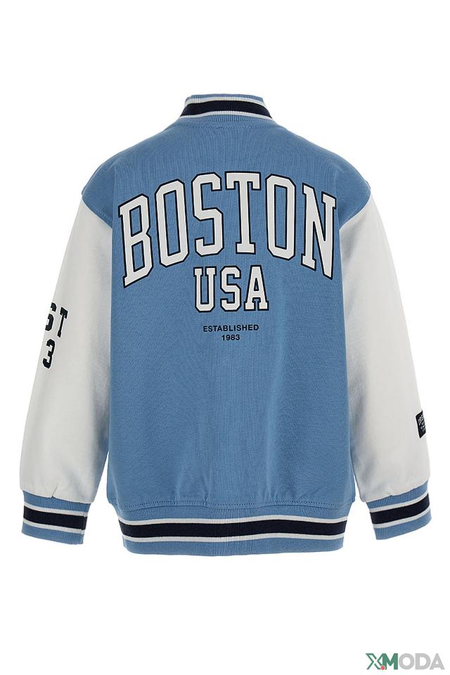 Передняя часть куртки украшена вышивкой с логотипом и надписью "Boston", а на спине – крупная надпись "BOSTON USA". Контрастные белые вставки на рукавах и манжетах добавляют динамичности образу. Куртка изготовлена из 100% хлопка, что обеспечивает комфорт и воздухопроницаемость.