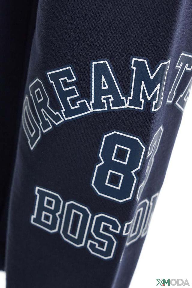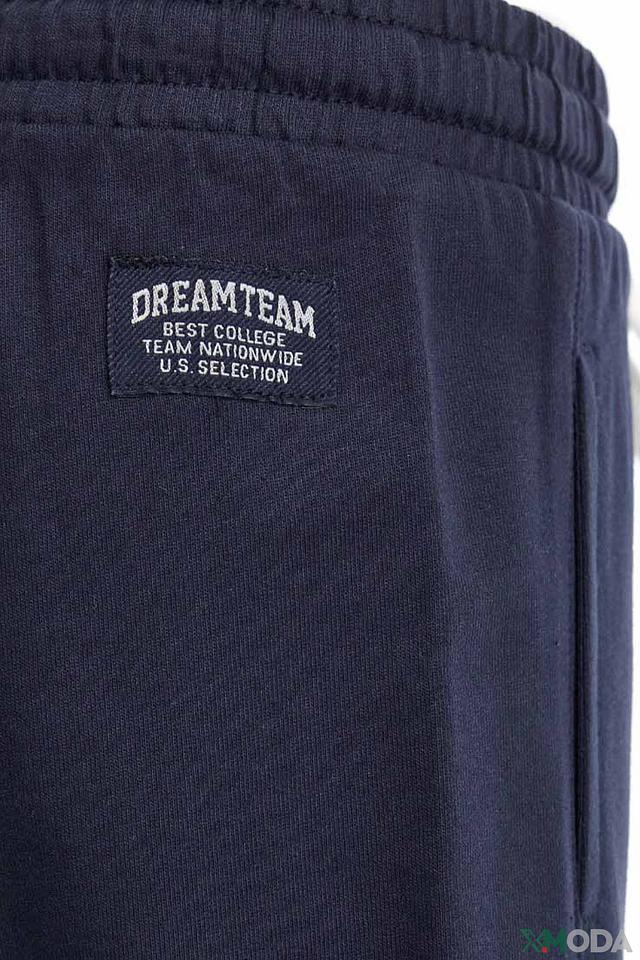 Брюки имеют удобный эластичный пояс с регулируемой кулиской, благодаря чему они идеально сидят по фигуре. Боковые карманы позволяют хранить мелкие предметы. На левой штанине расположена яркая декоративная нашивка с надписью "DREAM TEAM" и номером 8, а также небольшая нашивка с логотипом бренда.