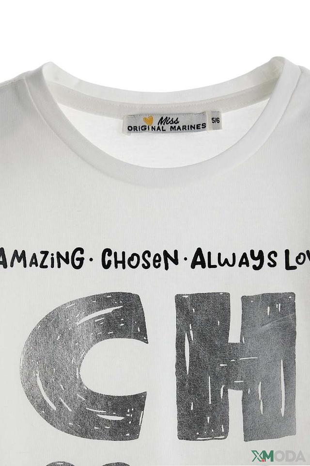 Белая футболка Original Marines для девочки с оригинальным принтом "CHC". Изготовлена из мягкого хлопка с добавлением эластана для комфорта и свободы движений. Стильный и удобный вариант для повседневной носки. Состав: хлопок 92%, эластан 8%
