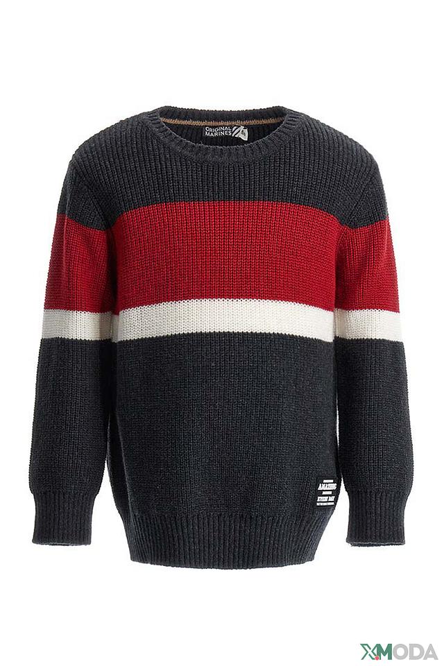 Этот джемпер от Original Marines станет отличным дополнением к гардеробу вашего мальчика. Модель выполнена в тёмно-синем цвете с яркими красными и белыми полосами, что придает ей динамичный и привлекательный вид.