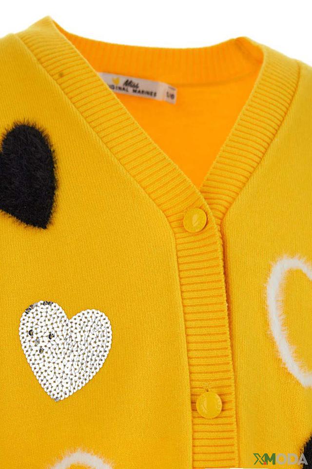 Этот очаровательный кардиган от Original Marines станет прекрасным дополнением к гардеробу юной модницы. Яркий жёлтый цвет и милые аппликации в виде сердечек делают его особенно привлекательным.