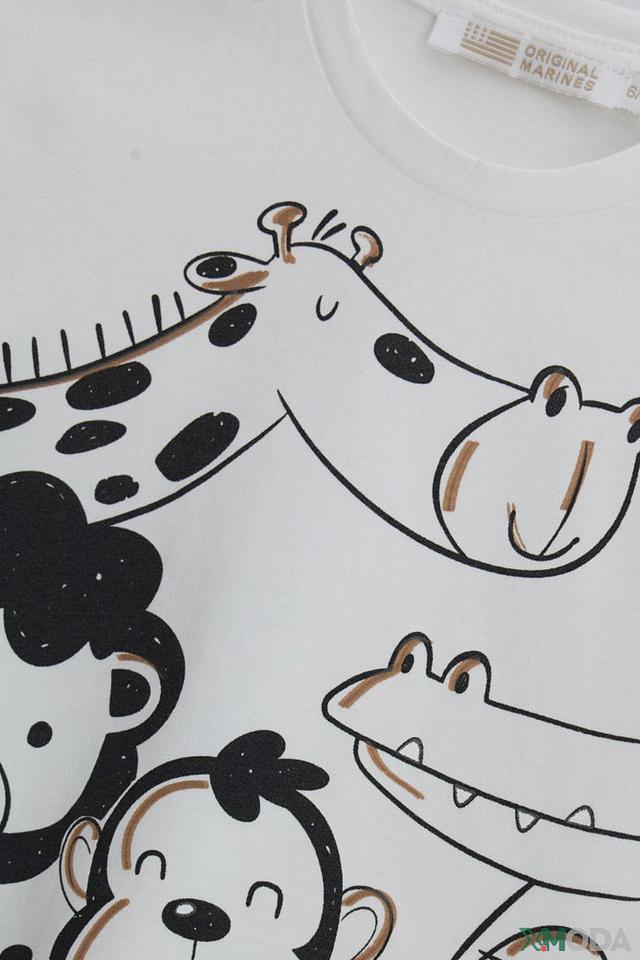 Этот очаровательный лонгслив от Original Marines станет отличным дополнением к гардеробу вашего мальчика. Выполненный в нежном молочном цвете, он украшен красочным принтом с изображением льва, жирафа, обезьянки и крокодила.