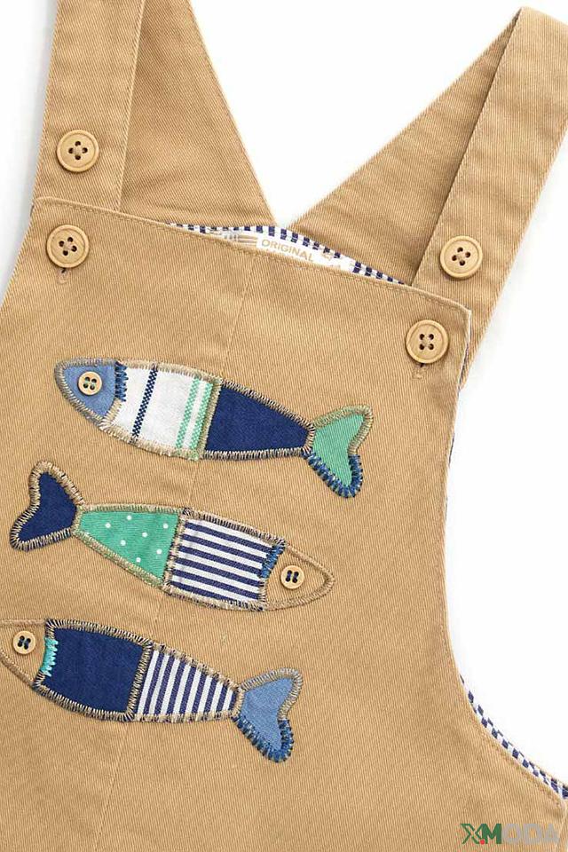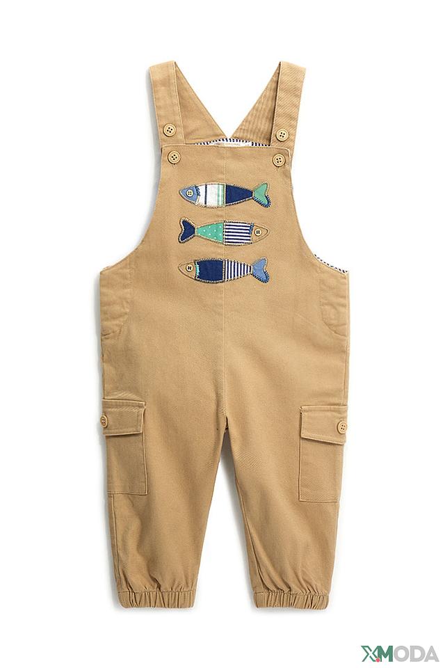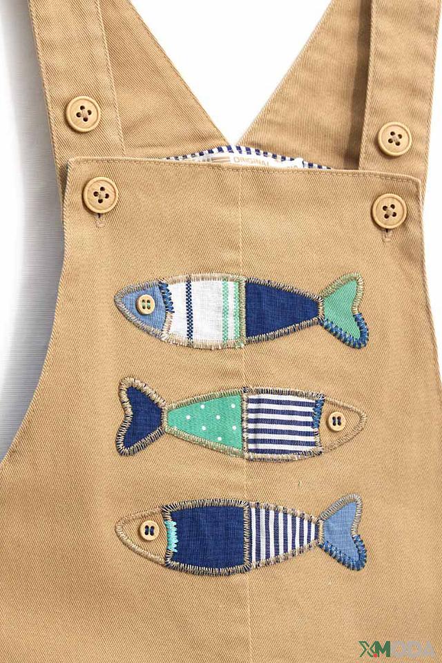 Детский полукомбинезон Original Marines песочного цвета с ярким принтом в виде рыбок. Изготовлен из хлопка с добавлением эластана для комфорта и свободы движений. Состав: Состав_подкладка хлопок 100%, хлопок 97%, эластан 3%