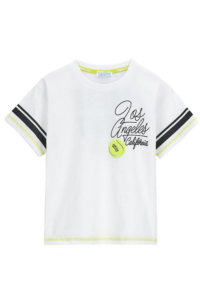 Эта стильная футболка от Original Marines станет отличным дополнением к гардеробу вашего мальчика. Футболка выполнена в белом цвете и украшена оригинальным принтом с изображением теннисного мяча и надписью "Los Angeles California".