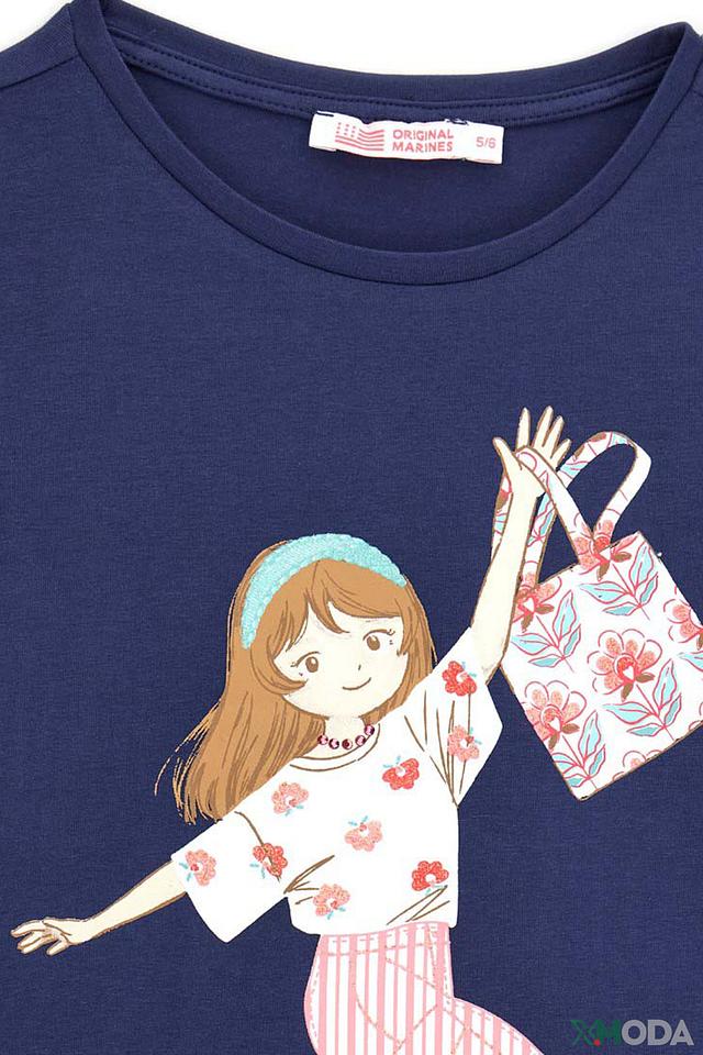 Детская футболка Original Marines синего цвета с ярким принтом девочки с сумкой. Изготовлена из мягкого хлопка с добавлением эластана для комфорта и свободы движений. Отличный выбор для повседневной носки. Состав: хлопок 92%, эластан 8%