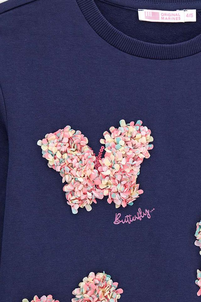 Свитшот Original Marines синего цвета, украшен аппликациями в виде бабочек. Изготовлен из мягкого хлопка с добавлением эластана для комфорта и свободы движений. Состав: хлопок 95%, эластан 5%