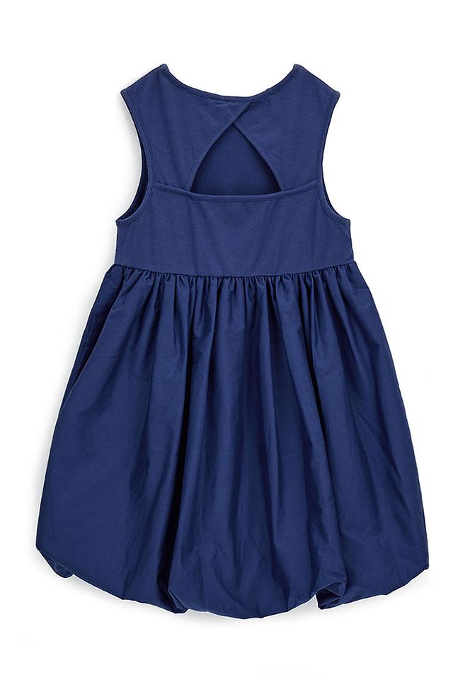 Синее платье от Original Marines для девочек, выполненное из хлопка с добавлением эластана. Модель имеет круглый вырез горловины и декоративную выемку на спине. Подкладка выполнена из 100% хлопка. Состав: Состав_подкладка хлопок 100%, Состав_2 хлопок 100%, хлопок 95%, эластан 5%