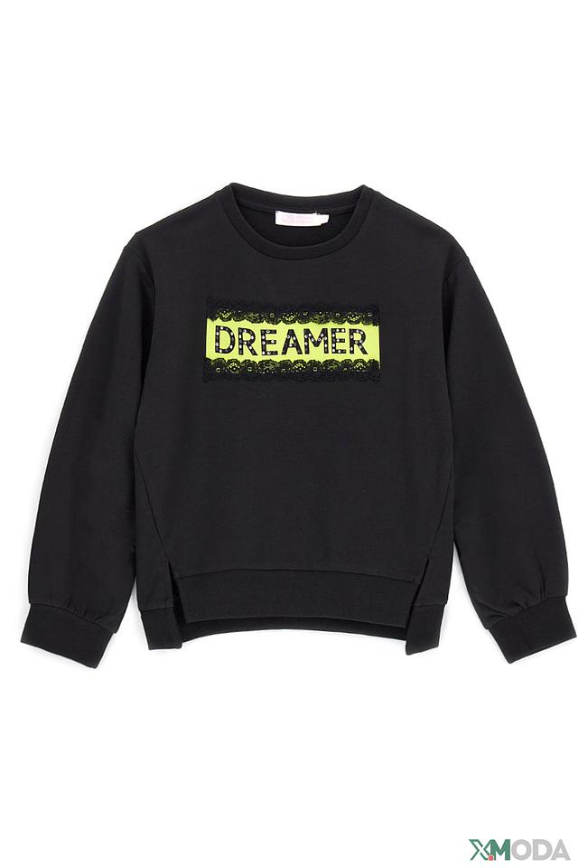 Свитшот Original Marines для девочки, чёрного цвета, с оригинальным принтом "DREAMER". Изготовлен из мягкого хлопка с добавлением эластана для комфорта и свободы движений. Состав: хлопок 95%, эластан 5%