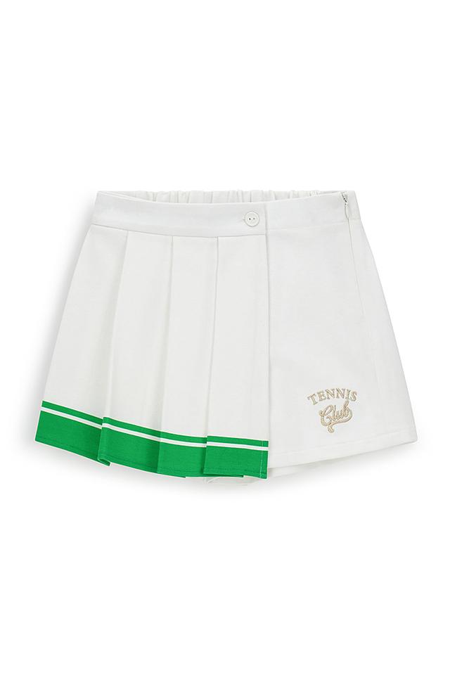 Передняя часть юбки украшена зелеными полосами и вышивкой "Tennis Club", что придает ей спортивный и стильный вид. Плиссированная юбка создает легкий и воздушный силуэт.
